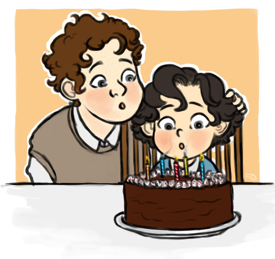 Another commission from the absolutely amazing shootbadcabbies, who was incredibly sweet and had this ready for my birthday. I adore shootbadcabbies and I am in love with Mycroft helping Sherlock blow out his candles.