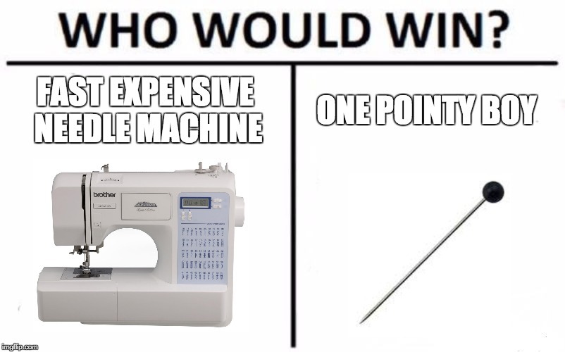 You don’t know true fear until you’ve sewn over a pin and the tip of the needle has broken off and launched itself directly at your face.
