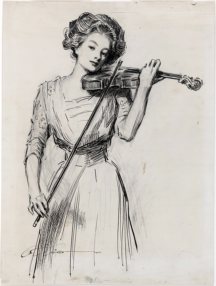 Charles Dana Gibson (1867-1944), Sweetest Story Ever Told (c.1910), pen and ink over graphite underdrawing, published in Collier’s Weekly, August 13, 1910. Via Library of Congress.
