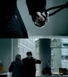 Sherlock awkwardly shuffling from foot to foot in the doorway, likely