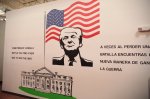 The quotes with his face are in Spanish as well as English. This is a reeducation center.