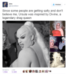 I feel so mixed about this. I love that she was inspired by Divine and they want to honor that BUT there are never any complex interesting roles for fat women and so a fat woman who fucking owns her sexuality and knows she is beautiful and could choose another form magically if she wanted but chooses to be this amazing curvy goddess is something my fat happy self wants to see played by a woman (especially because fat bodies and drag queens are both often played for laughs with straight audiences). My fat self and my queer self are both REALLY worried that they are going to compromise the integrity of this character. Also drag queens are an inherent part of lgbtqa culture and we need rather desperately for villains to stop being queer coded until we have enough queer heroes to balance out. Otherwise we are still only seeing ourselves as characters that should be rooted out, defeated, subverted, or killed, which is no message to send our youth.