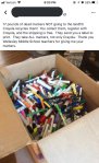 There do seem to be some limits, however, as far as I can tell, anyone can ship in a box of markers. “Any sturdy cardboard box with minimal outer markings will work. The more markers you ship, the more efficient this program will be. We suggest a minimum of 100 markers and a maximum of up to 40 pounds.”