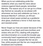 For Marsha Johnson and all those who were part of the Stonewall Riot and took a stand against the jackbooted thugs who tried to oppress and persecute them