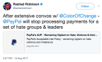In response, PayPal released a strong statement on Tuesday condemning hate