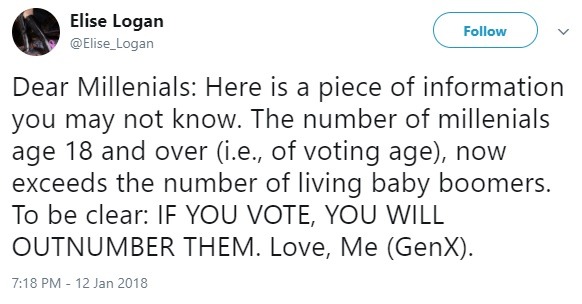 Vote! The lower the voter turnout, the more likely republicans are to win. Young people are majority liberal, but are way less likely to vote. Our voices matter. Vote to enact change!