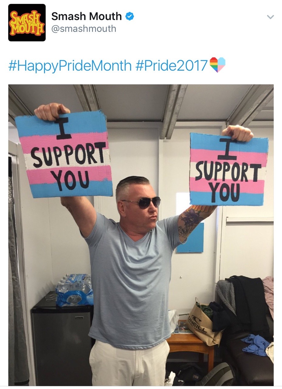 oceansweather: Of all the strange things to happen in 2017, Smash Mouth explicitly supporting trans people during pride month is by far the most pleasant. Hey now, youβre an all star.