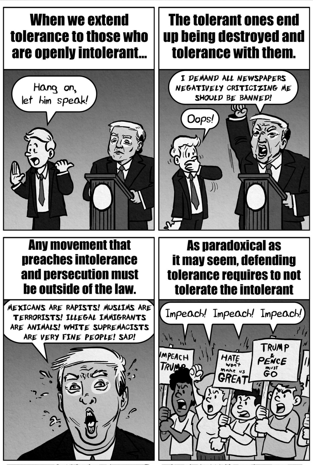 “Should a tolerant society tolerate intolerance? The answer is NO. It’s a paradox, but unlimited tolerance can lead to the extinction of tolerance.” —Karl Popper